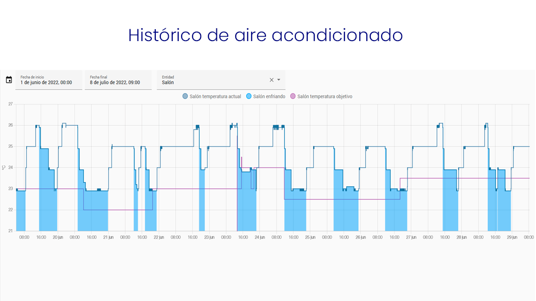 Además, podrás consultar históricos y consumos por períodos concretos de tiempo para colaborarcon la gestión de la energía y la productividad.