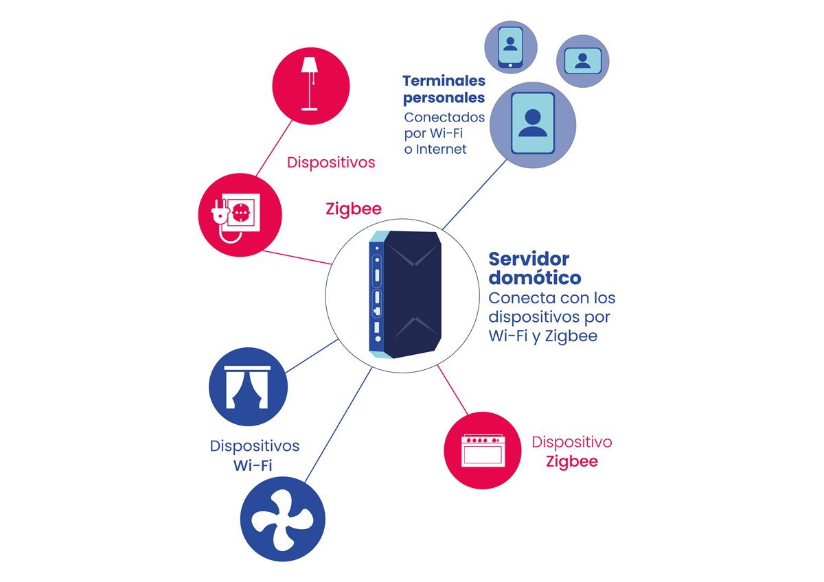 Cada sistema domótico está equipado con pasarelas de comunicaciones que conectan los equipos domóticos a la plataforma, esto crea un ecosistema que funciona como un único conjunto para