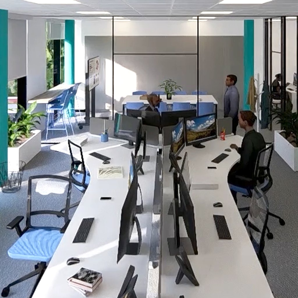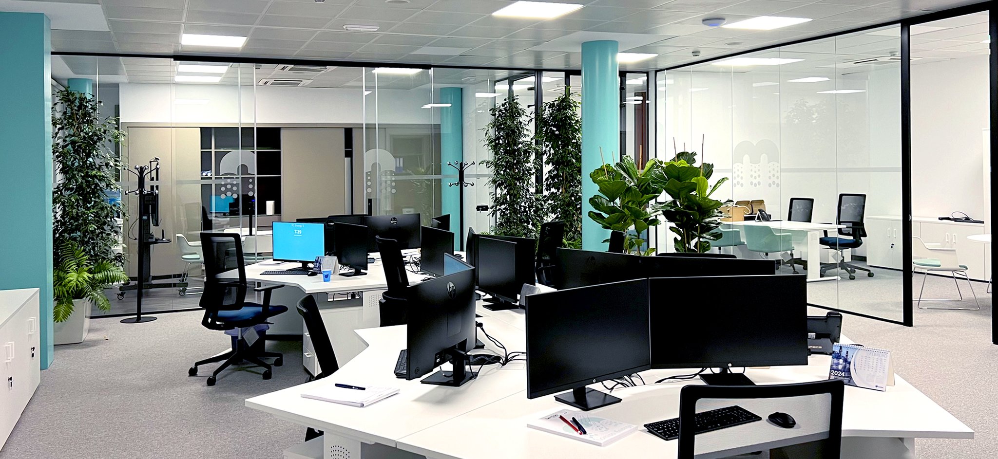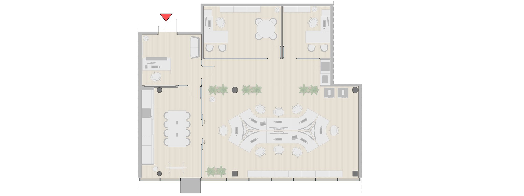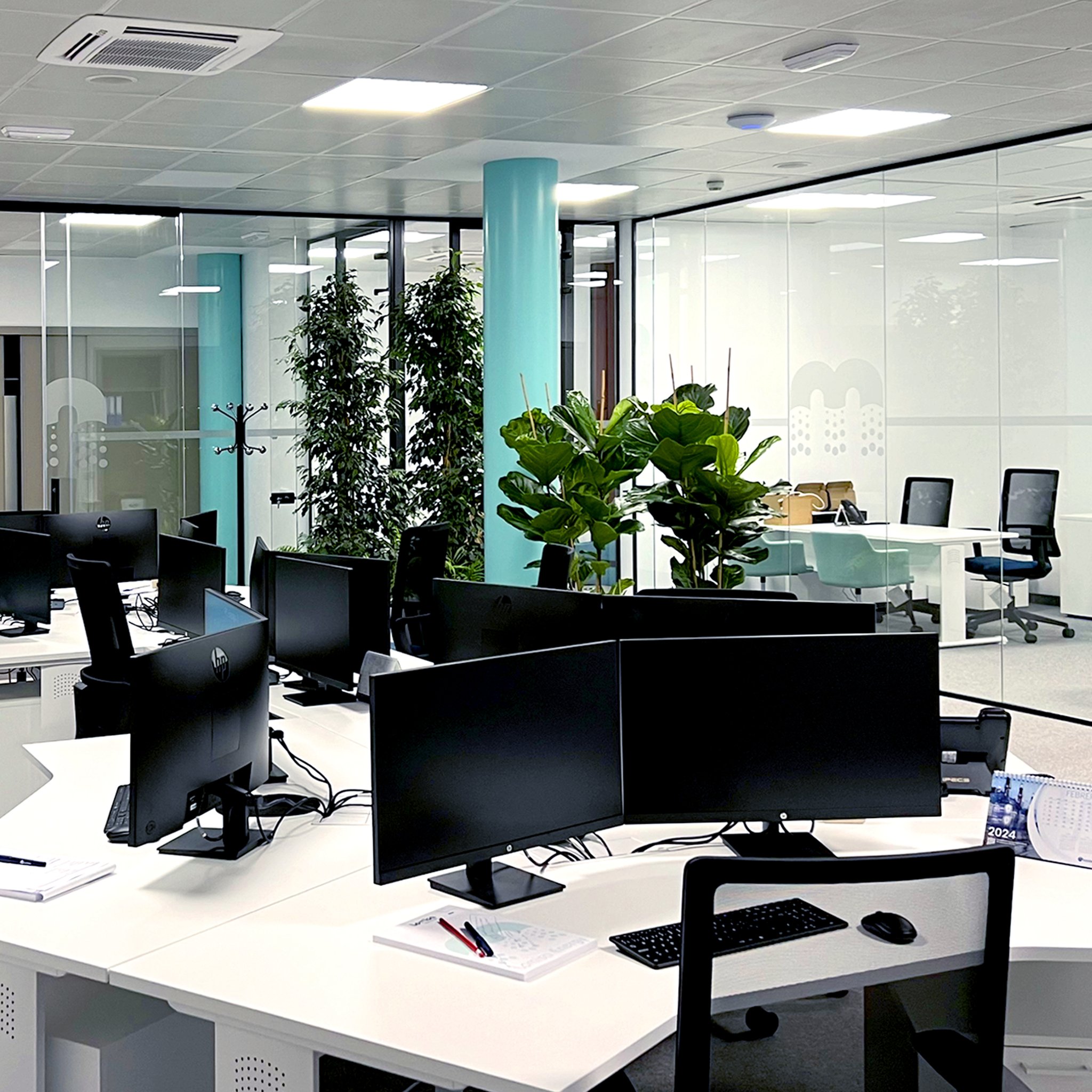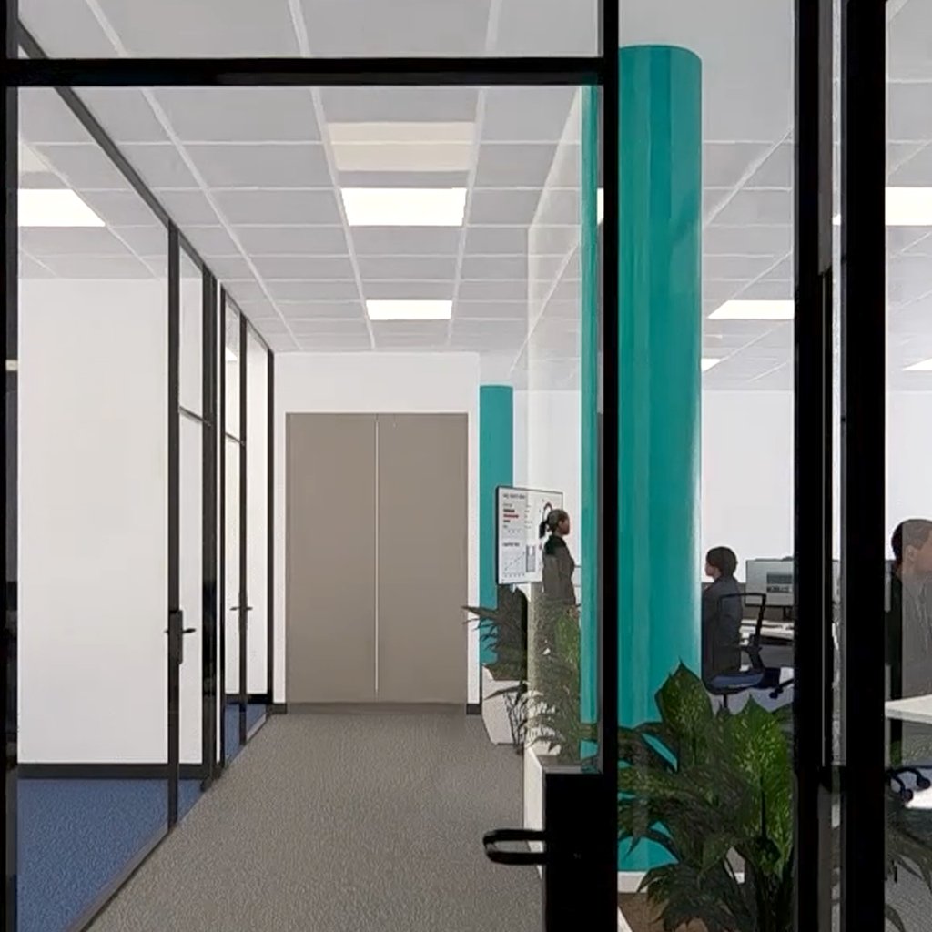 Reforma integral de una oficina desde el diseño hasta la dirección y control de obra, aportando además el desarrollo de sistema de control domótico. La propuesta modifica las estancias